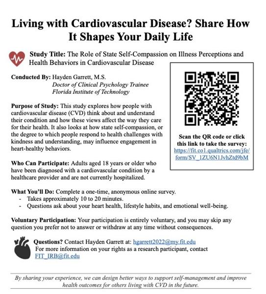 If you're 18 years or older, living in the U.S., and have any form of cardiovascular disease, I'd be extremely grateful if you took part in short, anonymous 10-minute survey. You can either scan the QR code on the recruitment form attached to this post or click this direct link to the online survey: